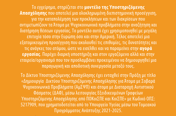 Καλώς ήρθατε στο Εξειδικευμένο Γραφείο Υποστηριζόμενης Απασχόλησης (ΕΓΥΑ) του ΚοιΣΠΕ Ευ Ζην!!!